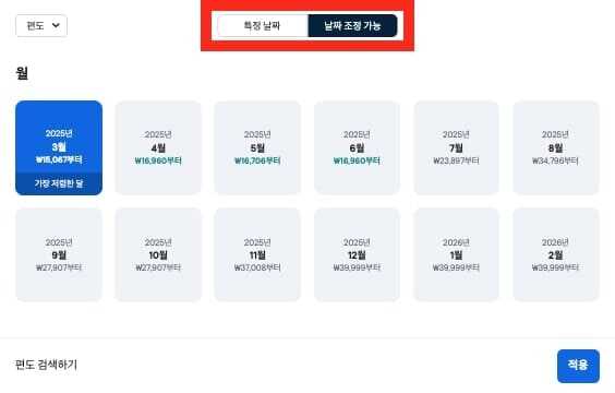 • 📆 "출발지→도착지 선택 후, 가는 편 달력 클릭" → 한 달 내 최저가 요일 확인 (화·수요일이 평균적으로 저렴)