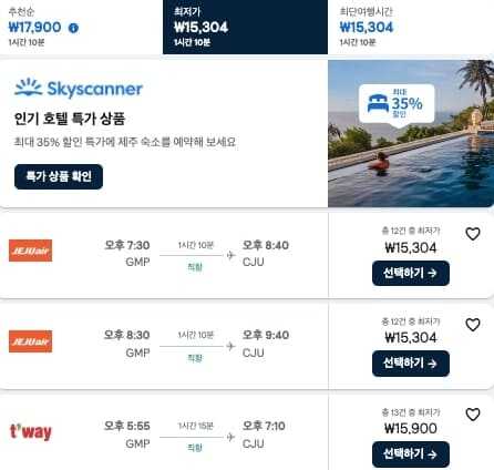 • 📲 앱 전용 할인: 스카이스캐너 모바일 앱에서만 제공되는 제주 노선 쿠폰 확인 필수
