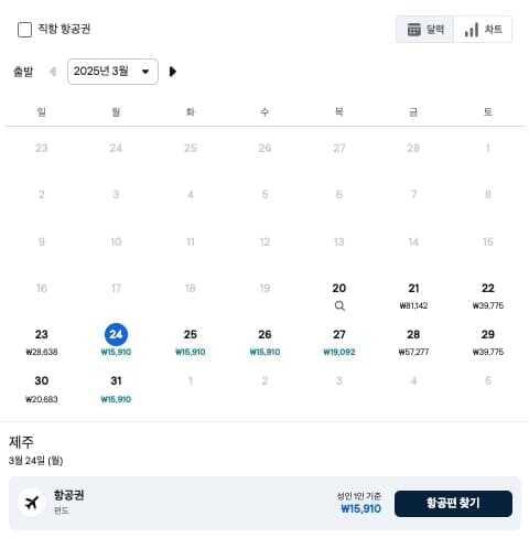 • ✈️ "직항 전용" 체크 → 직항편만 표시