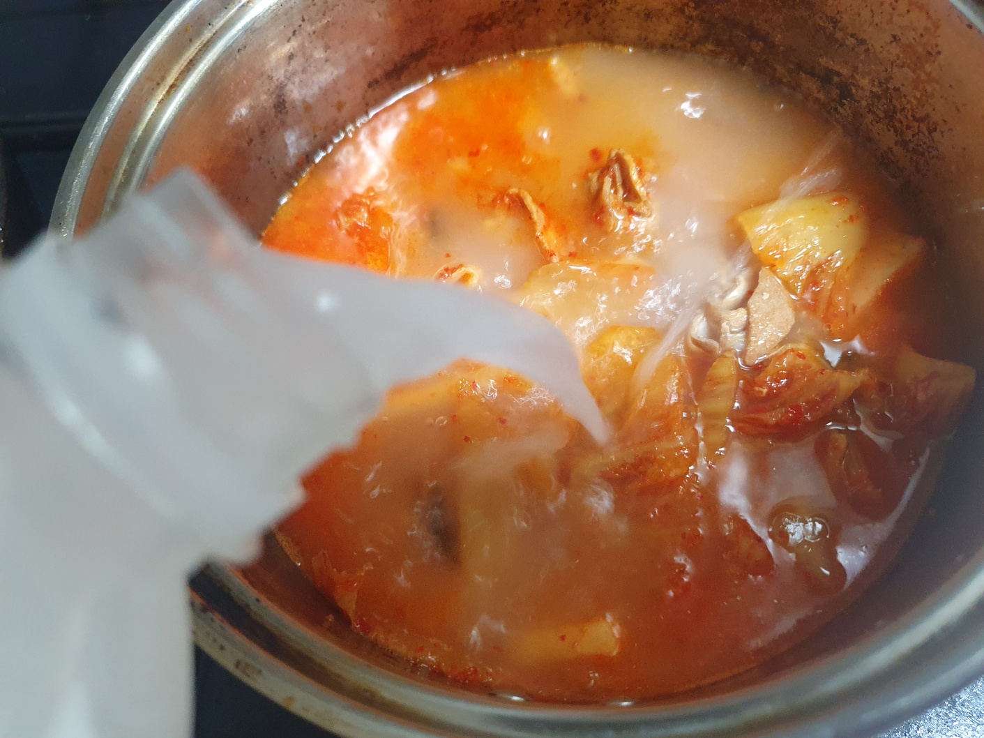 나는 김치찌개의 재료가 다 잠길 수 있을 만큼 넣었으니 참고하시길..