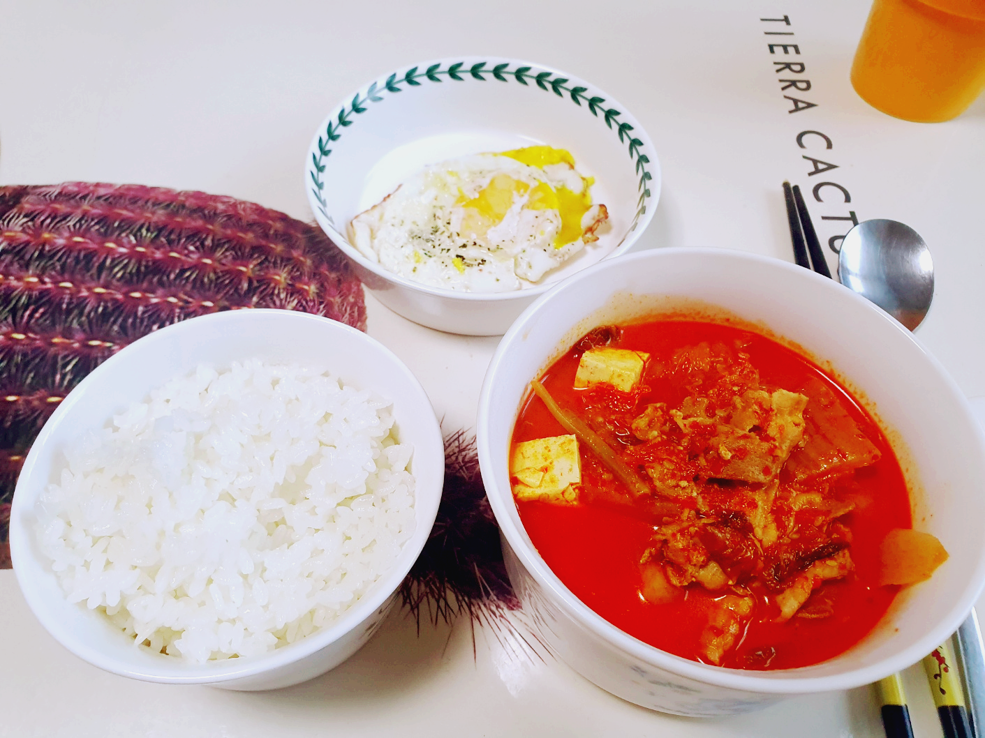 여하튼 반찬이 없으면 섭섭하므로 찌개는 조금 더 끓도록 내버려두고 계란 프라이를 하나 해준다.