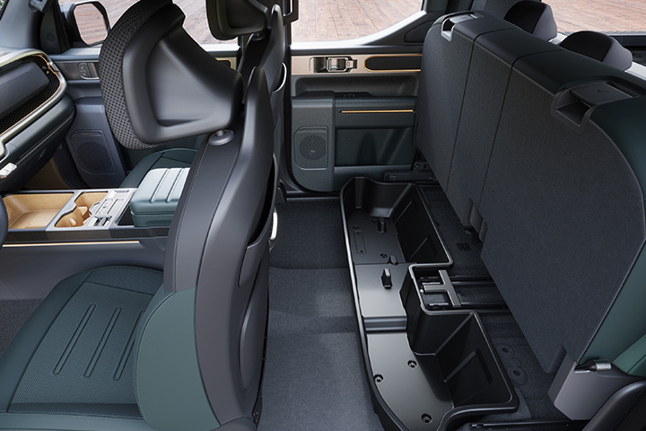 픽업 트럭의 특성상 2열 등받이를 뒤로 기울이기 어려운 점을 감안해 22°~ 30°의 각도조절과 슬라이딩 연동 리클라이닝 기능이 가능하도록 설계해 동급 최고 수준의 공간을 확보했습니다.
