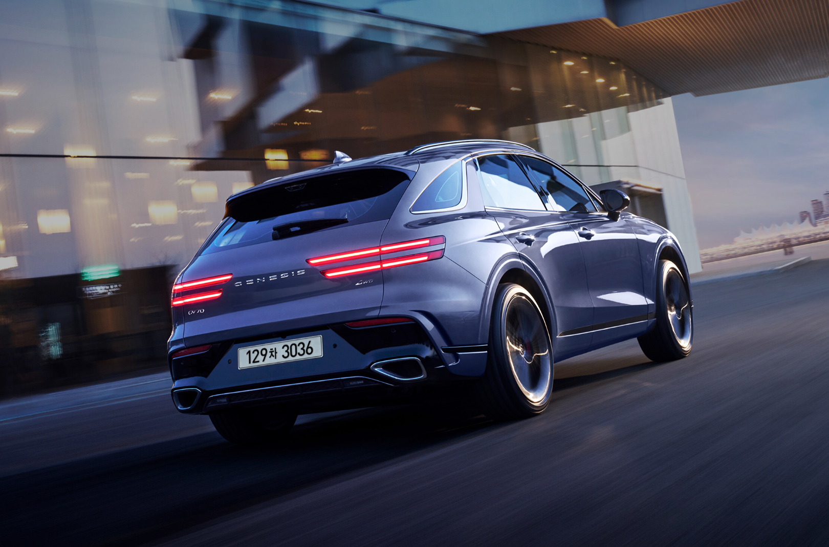 GV70의 외관은 현대 자동차와 제네시스 브랜드의 상징인 크레스트 그릴을 중심으로, 두 줄 디자인의 쿼드 램프를 적용해 고급스러움을 극대화해 정제된 우아함과 함께 역동성을 강조하며 제네시스의 정체성을 확고하게 드러내고 있습니다.