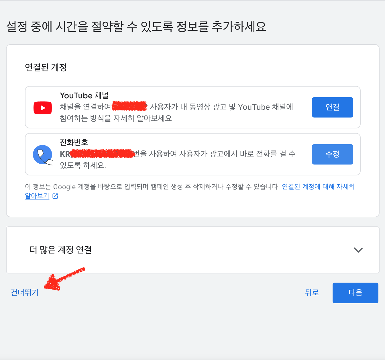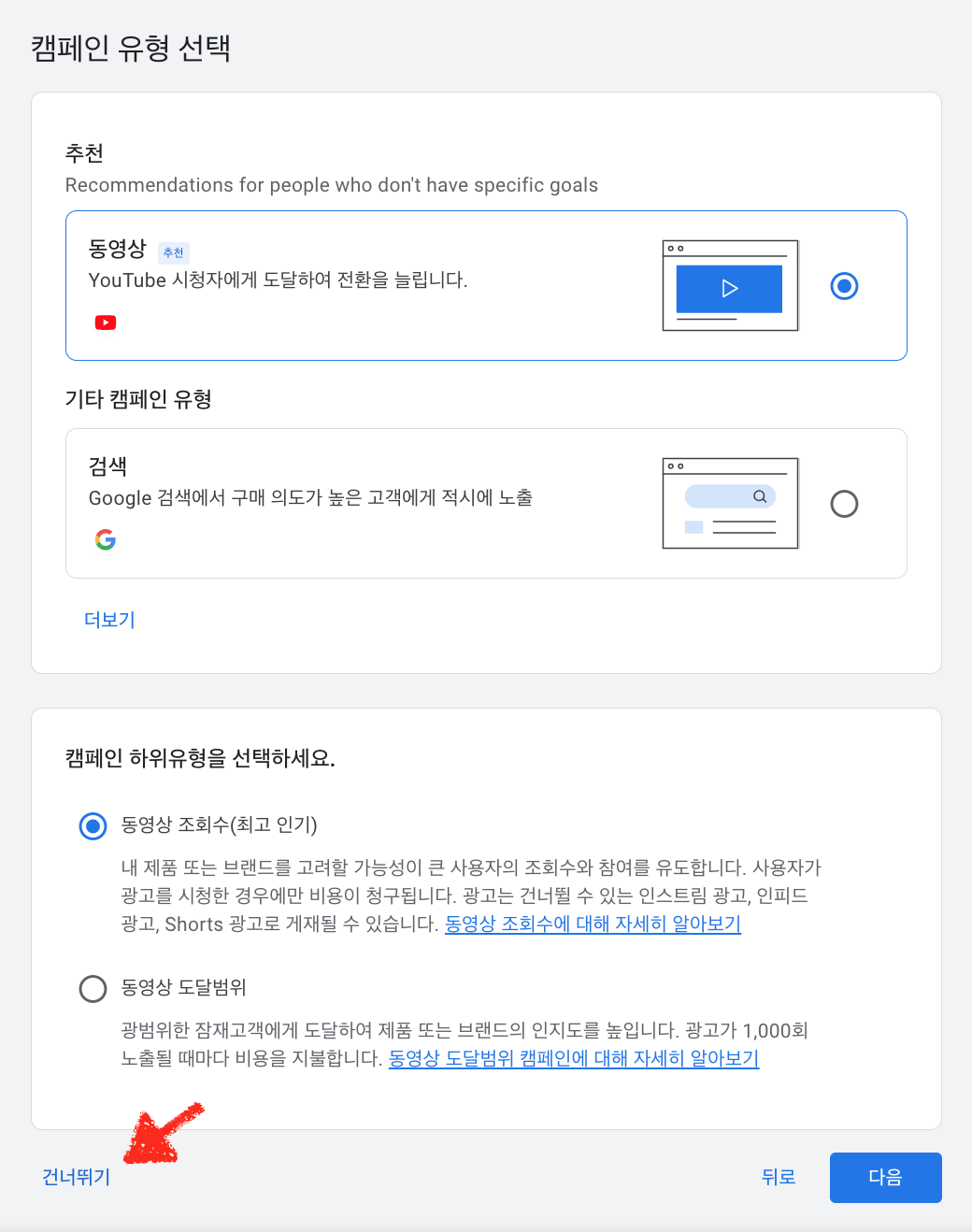우리는 돈을 써서 광고 집행을 하지 않을 예정이기 때문에 모두 건너뛰기를 선택 하셔도 무방합니다.