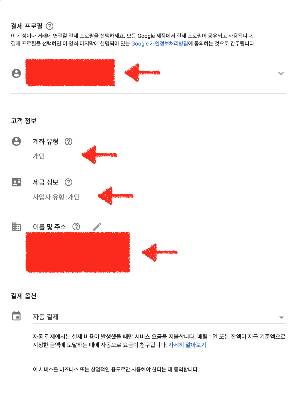필자는 구글 계정에 개인 정보가 입력 되어있기 때문에 아래 처럼 자동으로 생성이 되어있지만 그렇지 않으신 분들은 개인 정보를 입력하시면 됩니다.